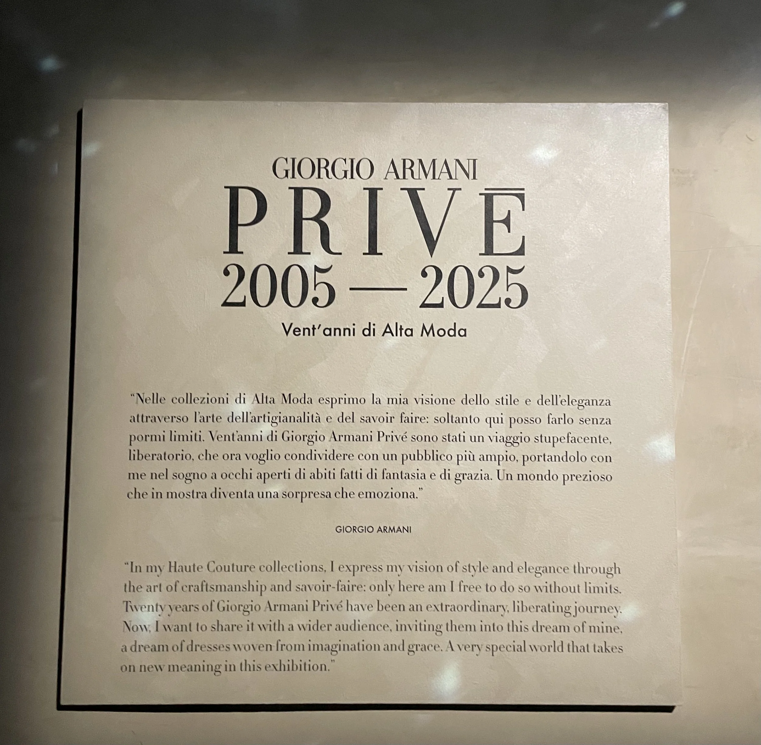 Walking through Armani/Silos, this way of thinking becomes very clear. The garments feel calm and self-contained, confident without needing to impress. They carry a sense of time, not tied to a specific trend or moment, but designed to remain relevant as life changes. This idea of elegance, steady and understated, is what continues to draw me in.